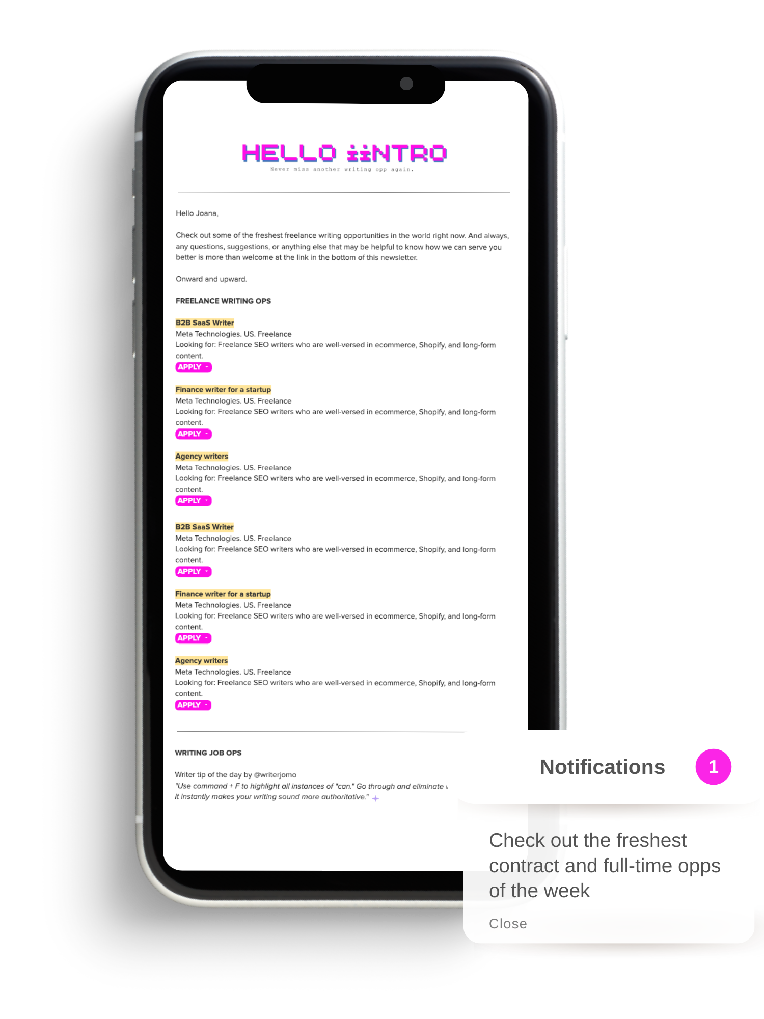 Hello iinTro provides a curated selection of full-time and freelance contract writing and content opportunities.